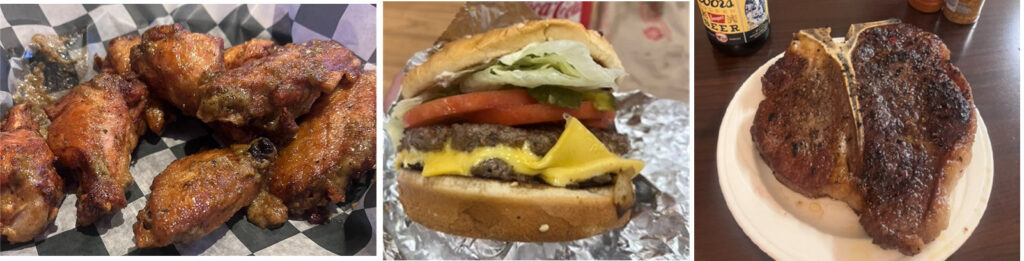 今回はアパートを借りて滞在したため、食事は自分たちで用意しなければなりませんでした。とはいえ、男性二人の「欲望のままの食卓」ですから、栄養バランスなど考えるはずもなく、ハンバーガー、フライドチキン、ステーキと肉料理のオンパレード。